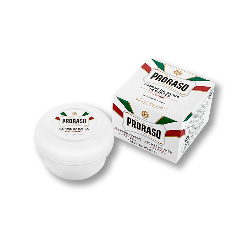Mýdlo na holení Proraso Sensitive Skin je speciálně vyvinuté pro muže s citlivou pokožkou, která má sklon k podráždění. Při šlehání vytváří bohatou a jemnou pěnu, která zjemňuje vousy, usnadňuje skluz strojku a chrání pleť před zarudnutím a drobnými poraněními. Díky obsahu ovsa a zeleného čaje pokožku hydratuje, zklidňuje a podporuje její přirozenou regeneraci.