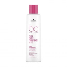 Veganský kondicionér Schwarzkopf BC Bonacure Color Freeze Conditioner se hodí pro potřeby barvených vlasů. Navrací vlasům optimální hodnotu pH 4.5. to pomáhá dosáhnout 90% zachování barvy až po 30 mytí. Kondicionér BC Bonacure Color Freeze Conditioner byl vytvořen tak, aby jemně čistil a vyživoval Vaše vlasy. Je bez silikonů a umělých barviv. Navrací vlasům optimální hodnotu pH a zabraňuje vyblednutí barvy vlasů. Oživuje matné barvy vlasů a uhlazuje povrch každého pramene vlasů, aby vytvořil brilantní lesk.
