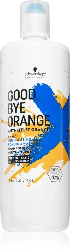 Schwarzkopf Goodbye Orange Shampoo neutralizuje nežádoucí podtóny ve středně hnědých až tmavě blond vlasech . Šampon zesiluje chladné tóny, působí proti podkladovým oranžovým a červeným odstínům. Kombinace modrých a zelených přímých barviv zajišťuje účinnou a dlouhotrvající neutralizaci nežádoucích oranžových a červených podtónů a zároveň šetrně čistí. Díky integrované Bonding Technology jsou vlasy vyživené a posílené. Šampon pomáhá zachovat barvu vlasů mezi návštěvami salonu.