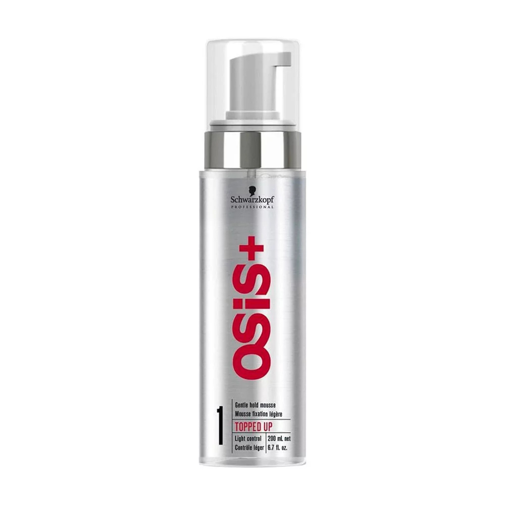 Schwarzkopf Professional Osis+ Topped Up je stylingová pěna pro přirozený objem a lesk bez aerosolu. Chrání vlasy před tepelným poškozením a dodává vlasům přirozený lesk a objem. Díky lehkému složení s glycerinem je vhodná pro velmi jemné nebo zvlněné vlasy. Vlasy s pěnou získají dlouhotrvající a přirozený objem. Stupeň fixace: 1.