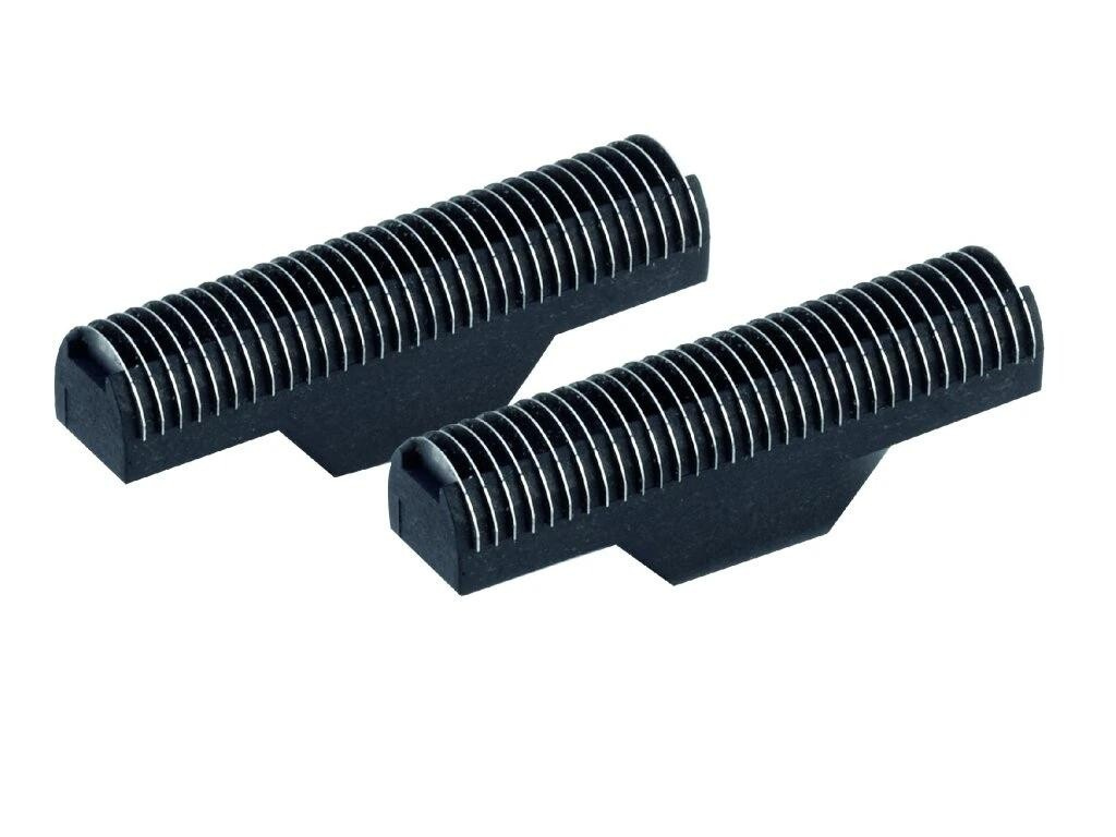 Nože jsou vyrobeny z kvalitní nerezové (nebo titanem upravené) oceli, která zajišťuje dlouhou životnost, vysokou odolnost a schopnost zachytit i velmi krátké vousy pro dokonale hladký výsledek.
