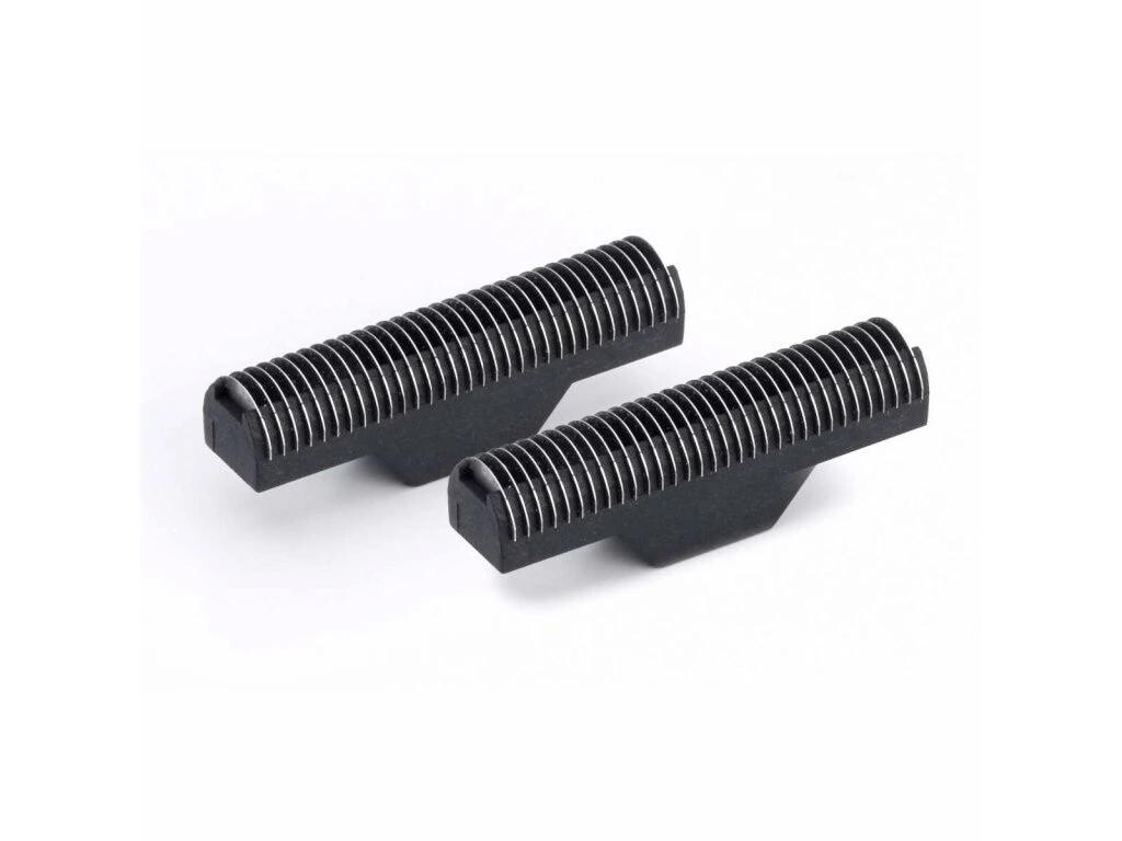 Čepele mají speciální „staggered“ (střídavé) uspořádání zubů, které zlepšuje zachycení vlasů a umožňuje hlubší a rovnoměrnější oholení. Díky tomu zvládají i hustší porost a zanechávají velmi hladký finiš bez nutnosti opakovaných přejezdů.