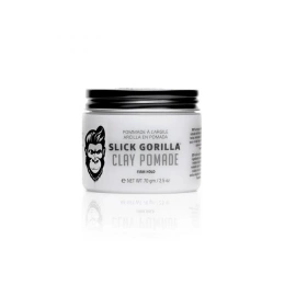 Slick Gorilla Clay Pomade je silně tužicí pomáda na vlasy s matným efektem, která poskytuje pevnou fixaci a maximální kontrolu nad účesem. Dodává vlasům texturu, objem a definici, aniž by je zatěžovala. Ideální pro strukturované a upravené styly, které potřebují dlouhodobě držet tvar.