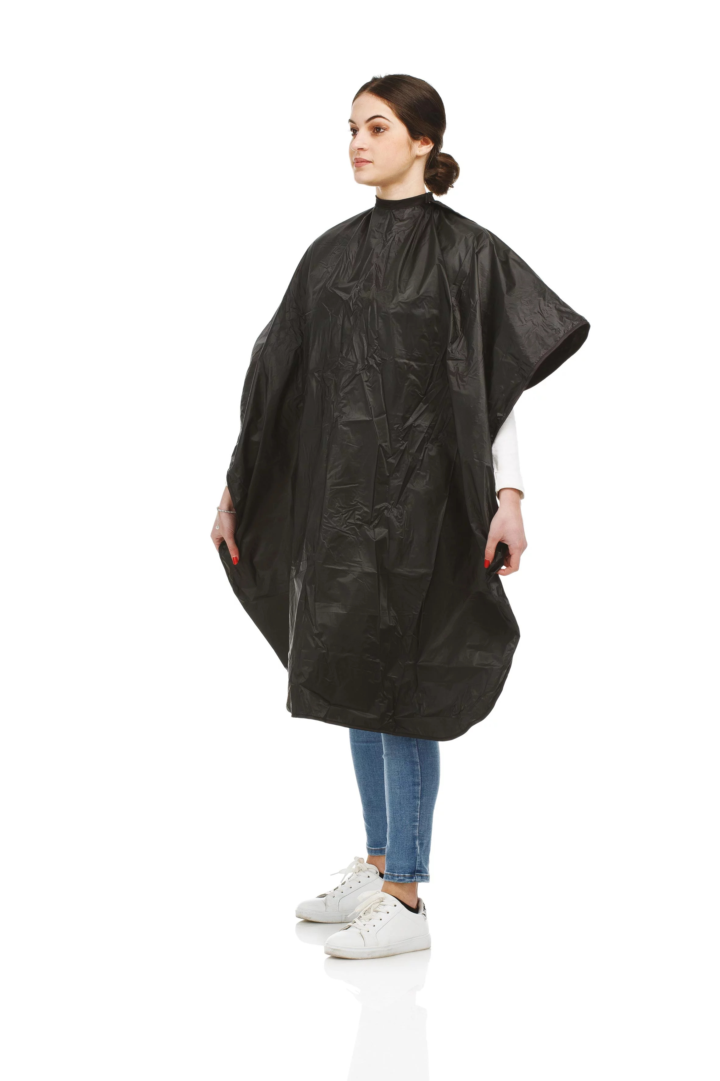 STHAUER- pláštěnka na barvení PVC 100%. Odolné vůči chemickému ošetření. Nastavitelné zapínání na knoflík. Velikost: 100x140 cm.