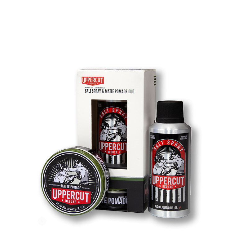 Uppercut Deluxe Gift Set kombinuje dvě oblíbené stylingové pomůcky – Uppercut Matte Pomade a Uppercut Salt Spray. Společně tvoří ideální duo pro moderní, přirozené účesy s objemem a matným finišem. Stylové balení z něj dělá perfektní dárek pro každého muže, který si potrpí na kvalitní vlasovou péči a styling.