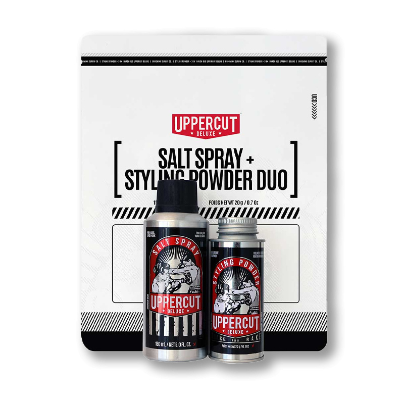 Uppercut Deluxe Salt Spray + Styling Powder Duo je stylingová sada, která kombinuje dva oblíbené produkty pro přirozený a texturovaný vzhled vlasů. Salt Spray dodává vlasům objem, texturu a matný finiš, zatímco Styling Powder umožňuje snadné dotvarování účesu s lehkou fixací a plností. Společně tvoří ideální duo pro ležérní i moderní styly, které působí nenuceně, ale drží po celý den.