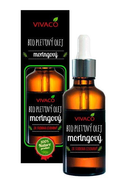 Za studena lisovaný moringový olej obsahuje řadu vitamínů, minerálů a omega mastné kyseliny. Zpomaluje stárnutí pokožky, je účinný při akné a napomáhá ke zmírnění pigmentových skvrn. Moringový olej je také vhodný pro regeneraci suchých a lámavých vlasů a současně působí proti tvorbě lupů a svědění hlavy. Pleťový olej má speciální aplikátor v podobě skleněné pipety. Baleno v krabičce.