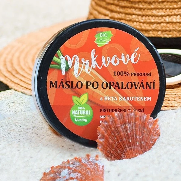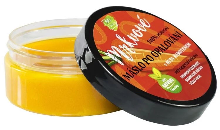 100% přírodní mrkvové máslo zvláčňuje, regeneruje a udržuje bronzovou barvu po dlouhou dobu. Díky vysokému obsahu mrkvového extraktu, beta karotenu a přírodních olejů, regeneruje, zvláčňuje a zpomaluje stárnutí pokožky. Dopřejte své pokožce dlouhodobé zlatavé opálení bez sloupání. Bez parabenů, barviv a konzervantů. Při nanesení na pokožku se máslo mění v olej a tím se velmi snadno roztírá.