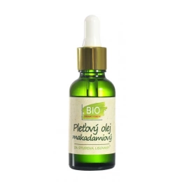 Makadamiový olej se získává lisováním makadamových ořechů za studena. Je unikátní svým obsahem mastných kyselin vysoké kvality. Díky tomu je vhodný i na vysušenou pokožku, které navrací její přirozenou pružnost a vláčnost. Pro své antioxidační látky chrání buňky před poškozením a brání stárnutí pleti, stimuluje regenerační procesy, urychluje hojení a pleť celkově revitalizuje. Má silný vyhlazující efekt. Rychle se vsakuje, nedráždí a je velice vhodný i pro dětskou pleť. Pleťový olej má speciální aplikátor v podobě skleněné pipety. Baleno v krabičce.