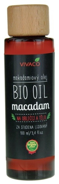 Makadamiový olej se získává lisováním makadamových ořechů za studena. Je unikátní svým obsahem mastných kyselin vysoké kvality. Díky tomu je vhodný i na vysušenou pokožku, které navrací její přirozenou pružnost a vláčnost. Pro své antioxidační látky chrání buňky před poškozením a brání stárnutí pleti, stimuluje regenerační procesy, urychluje hojení a pleť celkově revitalizuje. Má silný vyhlazující efekt. Rychle se vsakuje, nedráždí a je velice vhodný i pro dětskou pleť.