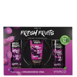 Dárková kazeta kosmetiky s výtažky z hroznového vína pro každodenní péči o pokožku a pleť. Svěží ovocná vůně oživuje mysl a dodává pocit svěžesti po celý den.