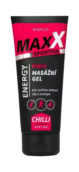 MASÁŽNÍ GEL HŘEJIVÝ - nová generace sportovní masážní emulze MAXX Sportiva s unikátní kombinací hřejivého chilli extraktu a regeneračního SYN-AKE hadího jedu pro rychlou přípravu na výkon (aktivaci síly a energie). Je vhodná pro prohřívací masáž pohybového aparátu především pro sportovce před tréninkem nebo závodem, ale i pro běžné užití před intenzívní fyzickou námahou. Masáž gelem s vysokým podílem aktivních látek přirozeně napomáhá prokrvení pokožky a zahřátí svalstva před jejich zatížením a předchází tak (v kombinaci se strečinkem) možnému svalovému zranění.