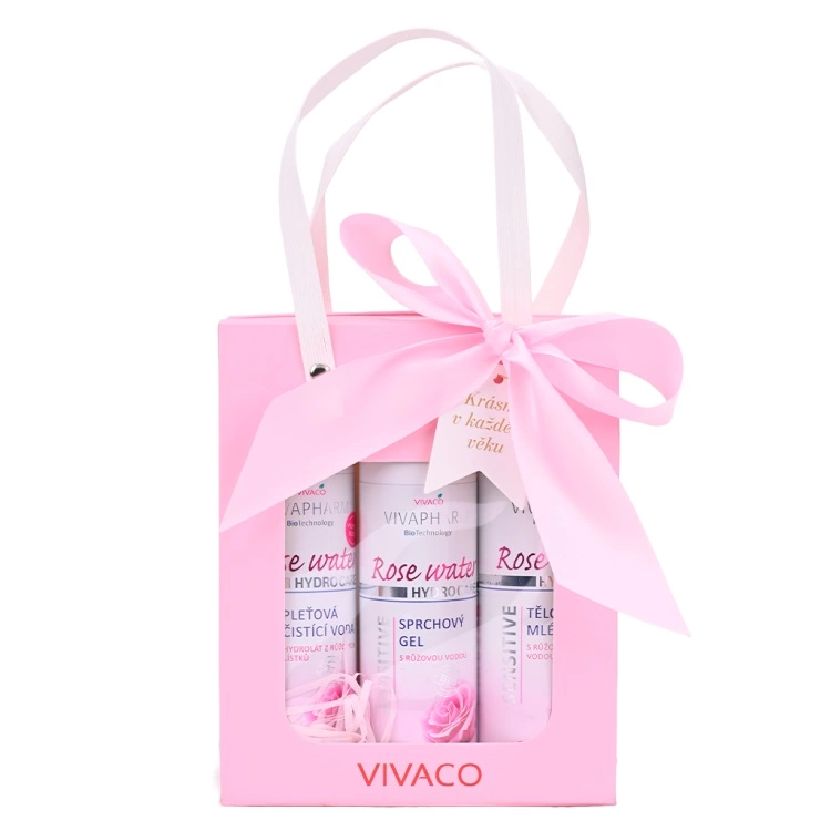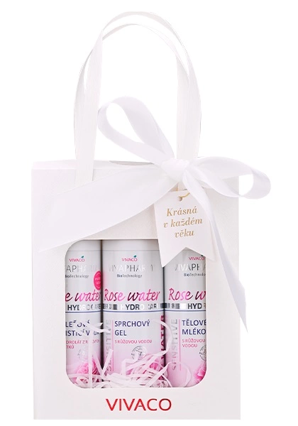 Dárkové balení péče s růžovou vodou vám zajistí dlouhodobou hydrataci a výživu pokožky celého těla. Kosmetika s vysokým obsahem hydrolátu z damascénské růže, zvláčňujících rostlinných olejů a vitamínu E je určená pro každodenní osvěžení a hydrataci pleti. Snadno se vstřebává, nezanechává pocit mastnoty. Má příjemnou jemnou vůni.