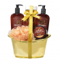 Krásné dárkové balení kosmetiky s bio arganovým olejem pro péči o pokožku těla i obličeje v dekorativní vaničce.