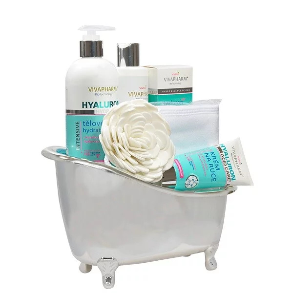 Krásné dárkové balení hydratační péče s kyselinou hyaluronovou v dekorativní vaničce. Darujte krásu a mládí.