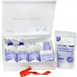 O kozím mléce: Kosmetika s kozím mlékem je návratem k přírodě a přírodním zdrojům. Obsahuje velké množství minerálních látek, stopových prvků, vitamínů a kyselinu listovou. Příznivě působí na pokožku, kterou vyživuje, zvláčňuje a zjemňuje, zajišťuje vyrovnané pH a dostatečnou hydrataci. Zanechává pokožku hebkou a jemnou. Velice kladně působí na citlivou a problematickou pokožku, je vhodné i pro alergiky, psoriatiky a atopiky.