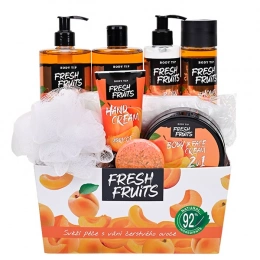 Dárkové balení kosmetiky s meruňkovým olejem pro péči o pokožku těla i obličeje v dekorativním papírovém obalu. Příjemná vůně meruněk vás bude provázet po celý den.