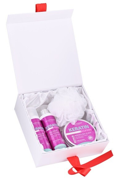 Luxusní balení vlasové kosmetiky s keratinem a kofeinem pro péči o všechny typy vlasů, především pro poškozené, oslabené a vypadávající v dárkovém boxu. Darujte krásu a mládí.