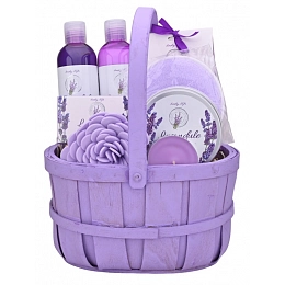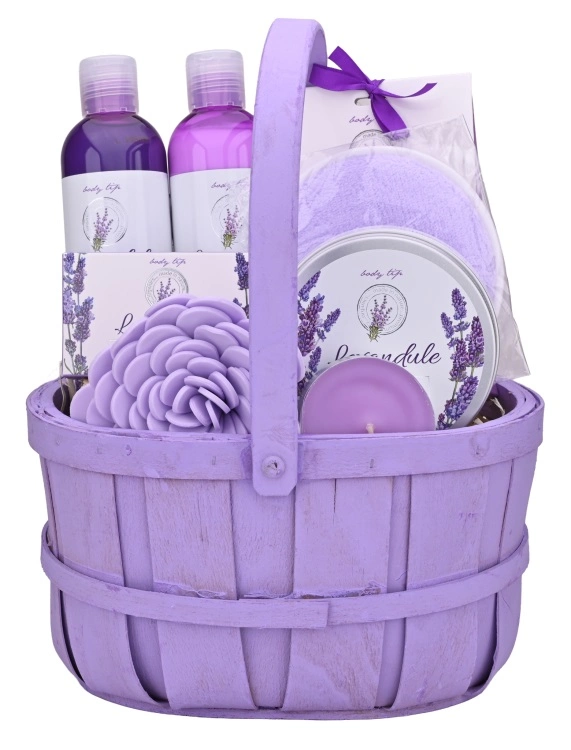 Krásné dárkové balení voňavé levandulové kosmetiky v dekorativním dárkovém koši. Dopřejte sobě a svým blízkým příjemné chvíle relaxace s kouzelným nádechem Provence.