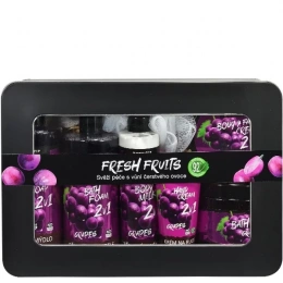 Dárkové balení kosmetiky s výtažky z hroznového vína pro každodenní péči o pokožku a pleť v dárkovém plechovém obalu. Svěží ovocná vůně oživuje mysl a dodává pocit svěžesti po celý den.