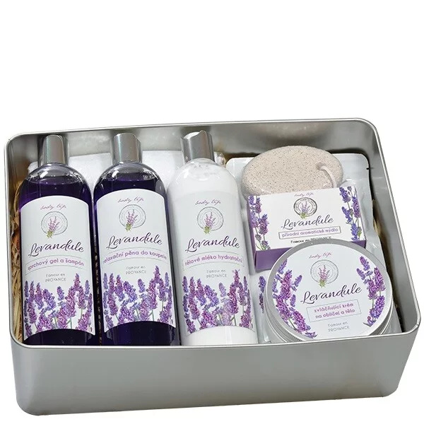 Luxusní balení péče s levandulovým olejem v dekorativním plechovém obalu. Levandulový olej je známý především pro své zklidňující a regenerační účinky. Dopřejte sobě a svým blízkým příjemné chvíle relaxace s kouzelným nádechem Provence.