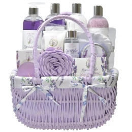 Krásné dárkové balení voňavé levandulové kosmetiky v dekorativním proutěném obalu. Dopřejte sobě a svým blízkým příjemné chvíle relaxace s kouzelným nádechem Provence.