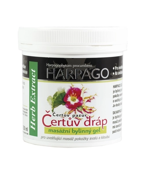 Bylinný gel s obsahem Harpagofyta (Čertův dráp) vhodný pro uvolňující masáž pokožky unavených a namožených svalů, kloubů a zad. Masáž má osvěžující a uvolňující účinky, zlepšuje prokrvení, příjemně chladí a navozuje tak pocit relaxace. Je vhodný také k regeneračním masážím po sportovní námaze.