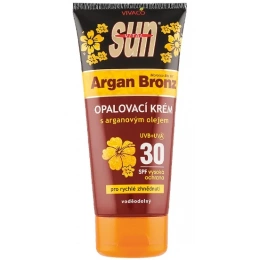 Opalovací krém s UVB + UVA faktorem chrání pokožku před spálením, minimalizuje riziko podráždění a vznik slunečních alergií. Arganový olej hydratuje pokožku a prodlužuje efekt opálení. Je voděodolný.