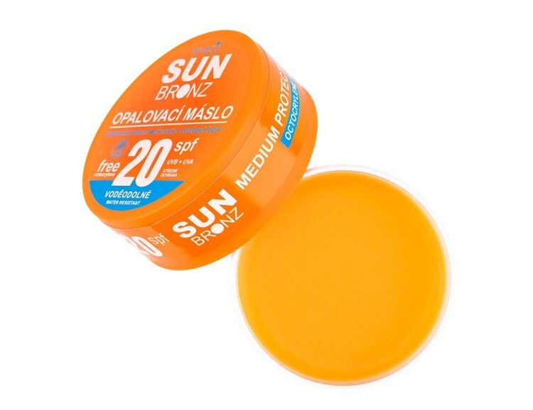 Zjemňující bambucké máslo chrání před vysušováním a stárnutím pokožky a napomáhá dlouhodobému zhnědnutí pokožky. Při nanášení na pokožku se máslo rozpouští a snadno se roztírá. Vhodné i pro děti od 3 let. Voděodolné.