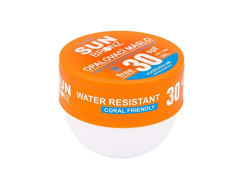 Zjemňující bambucké máslo chrání před vysušováním a stárnutím pokožky a napomáhá dlouhodobému zhnědnutípokožky. Při nanášení na pokožku se máslo rozpouští a snadno se roztírá. Vhodné i pro děti od 3 let. Voděodolné.
