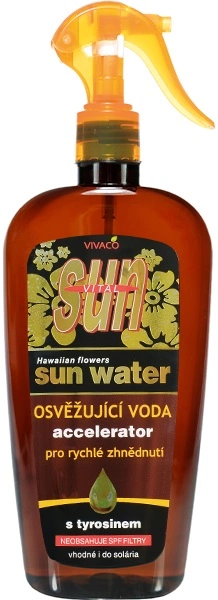 Použití: VÝROBEK NEOBSAHUJE UV FILTRY! NECHRÁNÍ PŘED ŽÁDNÝM TYPEM SLUNEČNÍHO ZÁŘENÍ! Používejte při opalování a po koupání v moři. Vhodné i pro solária. Pomocí rozprašovače nastříkejte vodu ze vzdálenosti cca 20 cm rovnoměrně na pokožku. Výrobek aplikujte během slunění dne potřeby na pokožku ošetřenou opalovacím přípravkem s odpovídající UV ochranou! Vhodné i pro děti od 3 let. Nestříkejte do očí!
