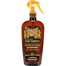 Osvěžující voda s chladivým účinkem pro hydrataci a osvěžení pleti. Tyrosin bronz akcelerátor napomáhá intenzivnímu a dlouhotrvajícímu zhnědnutí pokožky. Zvláště vhodné na obličej a exponové partie vystavené UV záření, písku a mořské soli.