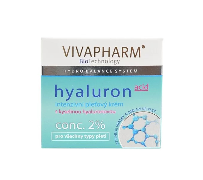 Pleťový krém s kyselinou hyaluronovou určený k dennímu i nočnímu použití. Redukuje vrásky a vyhlazuje jemné linie obličeje. Obsahuje nízkomolekulární kyselinu hyaluronovou, která se nazývá molekula mládí pro svou přirozenou schopnost zachovávat v pleti optimální stupeň hydratace a tonus pleti. Vyhlazuje a vyplňuje jemné linky a vrásky a zvyšuje elasticitu pleti.