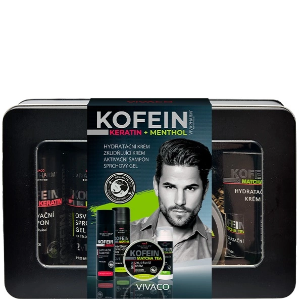 Dárkové balení pánské kosmetiky pro muže určené pro každodenní péči o tělo, vlasy i pleť v dárkovém plechovém obalu.