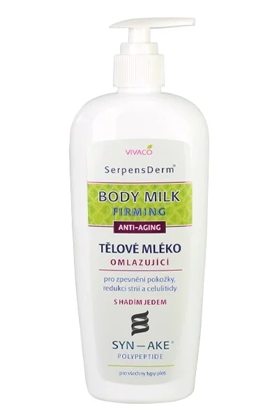 Jemné mléko s obsahem hadího jedu pro regeneraci a zpevnění pokožky. Přírodní oleje spolu s hydratačními látkami jako jsou kolagen, elastin nebo vitamín E přináší pokožce dlouhotrvající jemnost a chrání jí po celý den před nepříznivými vlivy. Vhodné pro každodenní péči o všechny typy pokožky, především pro zralou a povadlou pleť. Neobsahuje parabeny, alergeny, barviva ani minerální oleje.