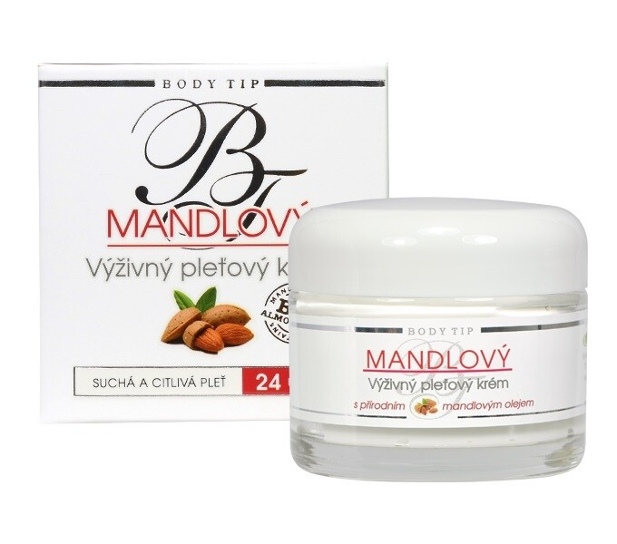Mandlový olej: Kosmetika s vysokým obsahem přírodního mandlového oleje dodá suché kůži potřebnou výživu, ochranu a hydrataci. Zpevňuje zralou pleť, hloubkově regeneruje a navrací pokožce přirozenou pružnost a hebkost. Mandlový olej nevyvolává alergické reakce a je vhodný pro všechny typy pleti, včetně citlivé. Výživná mandlová kosmetika má dlouhou tradici, díky její příjemné vůni a účinkům ji milují české ženy napříč všemi generacemi.
