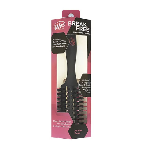 Kulatý kartáč BreakFree™ Straighten & Style přináší nejrychlejší způsob, jak dosáhnout hladkého, elegantního vyfoukání s menší bolestí, námahou a lámáním. Jedinečný design otevřeného barelu umožňuje další proudění vzduchu, což zrychluje dobu stylingu. Keramický válec napuštěný komplexem VitaBoost™ z biotinu a keratinu pomáhá posílit vlasy při každém tahu. Štětiny HeatFlex™ zajišťují snadné a bezbolestné rozčesávání při stylingu. Ultra měkké nylonové štětiny vyhlazují kutikulu a zvyšují lesk bez tahání a zadrhávání.