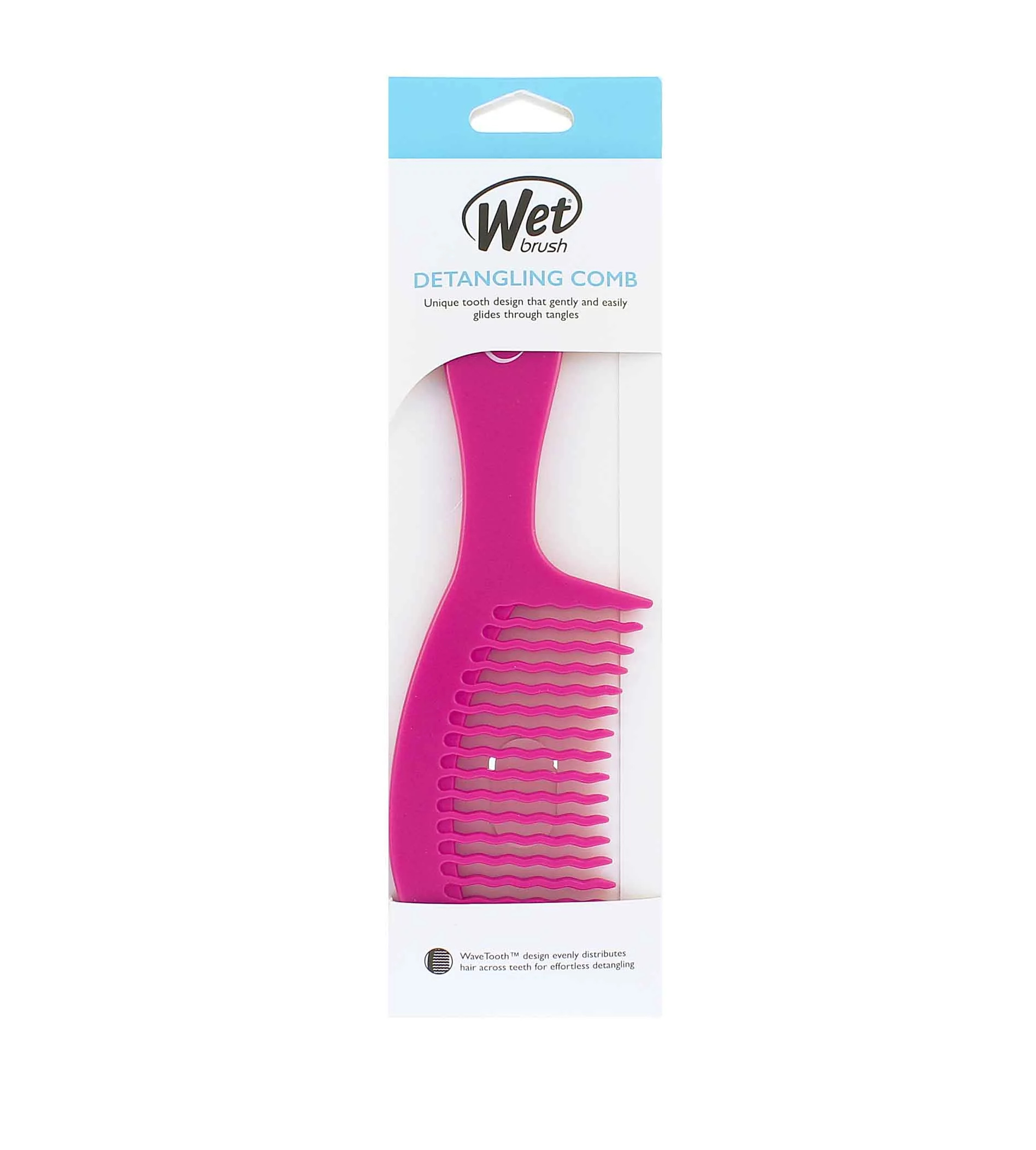 Hřeben Wet Brush Detangling Comb pomáhá distribuovat kondicionér a vlasovou péči po pramíncích a zároveň jemně rozmotává ty nejzacuchanější vlasy. Unikátní design WaveTooth umožňuje rovnoměrné rozložení produktu a vlasů po hřebeni, čímž se zabrání bolestivému tahání, zatímco zaoblené zuby jsou šetrné k pokožce hlavy.