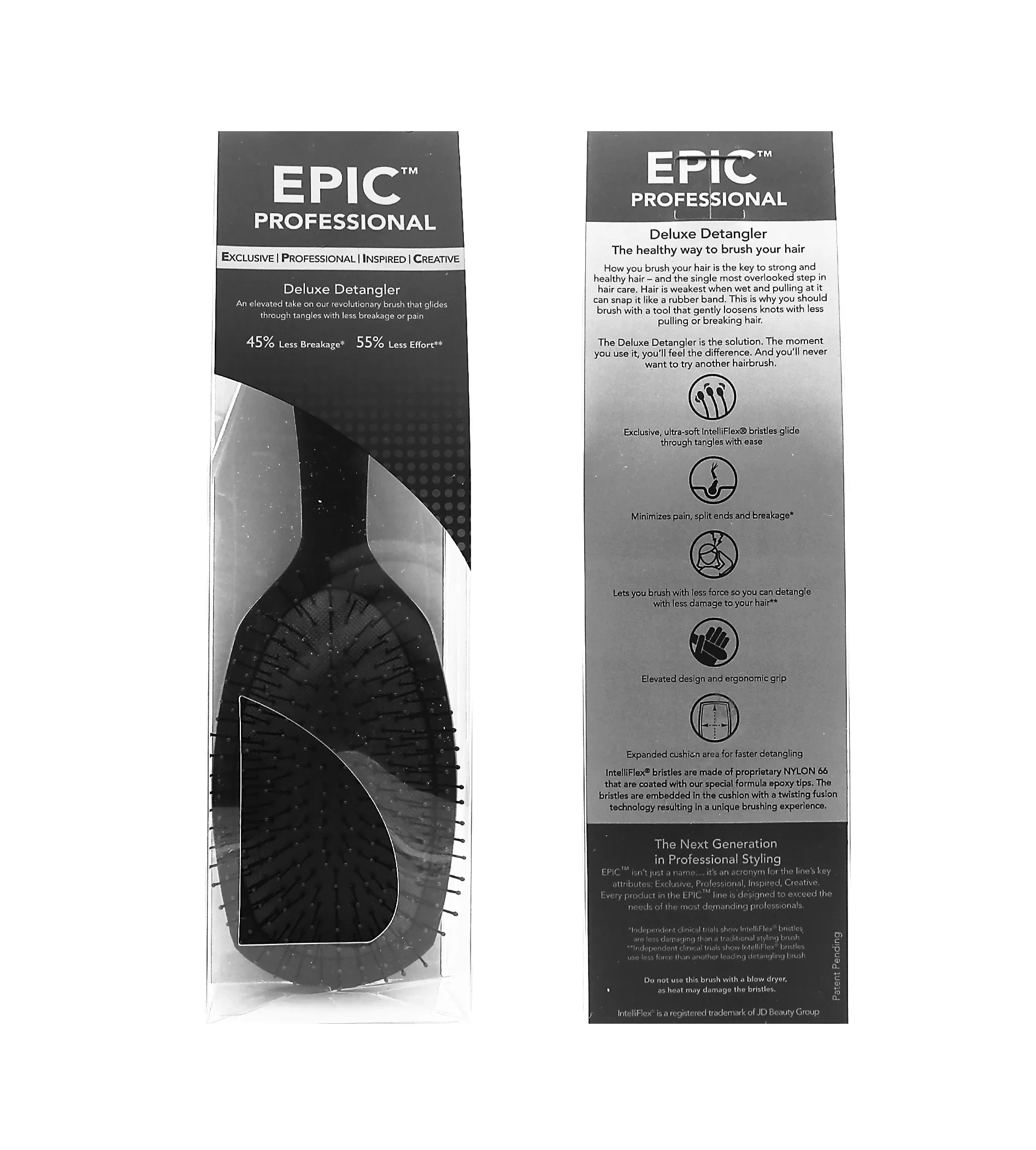 Wet Brush EPIC Deluxe Detangler – Black je profesionální rozčesávací kartáč s vylepšenými IntelliFlex® štětinami, navržený pro bezbolestné a maximálně šetrné rozčesávání i velmi hustých či zacuchaných vlasů. Prémiové černé provedení podtrhuje jeho salonní kvalitu.