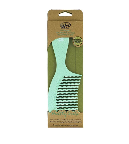 Pro vlasy a produkty, díky kterým se můžete cítit dobře, sáhněte po Wet Brush® Go Green™. Hřeben Wet Brush® Go Green™ Charcoal Infused Treatment Comb vyrobený částečně z rostlinného plastu, pomáhá distribuovat kondicionér a vlasovou péči po pramíncích a zároveň jemně rozmotává ty nejzacuchanější vlasy. Unikátní design WaveTooth® umožňuje rovnoměrné rozložení produktu a vlasů po hřebeni, čímž se zabrání bolestivému tahání, zatímco zaoblené zuby jsou šetrné k pokožce hlavy.