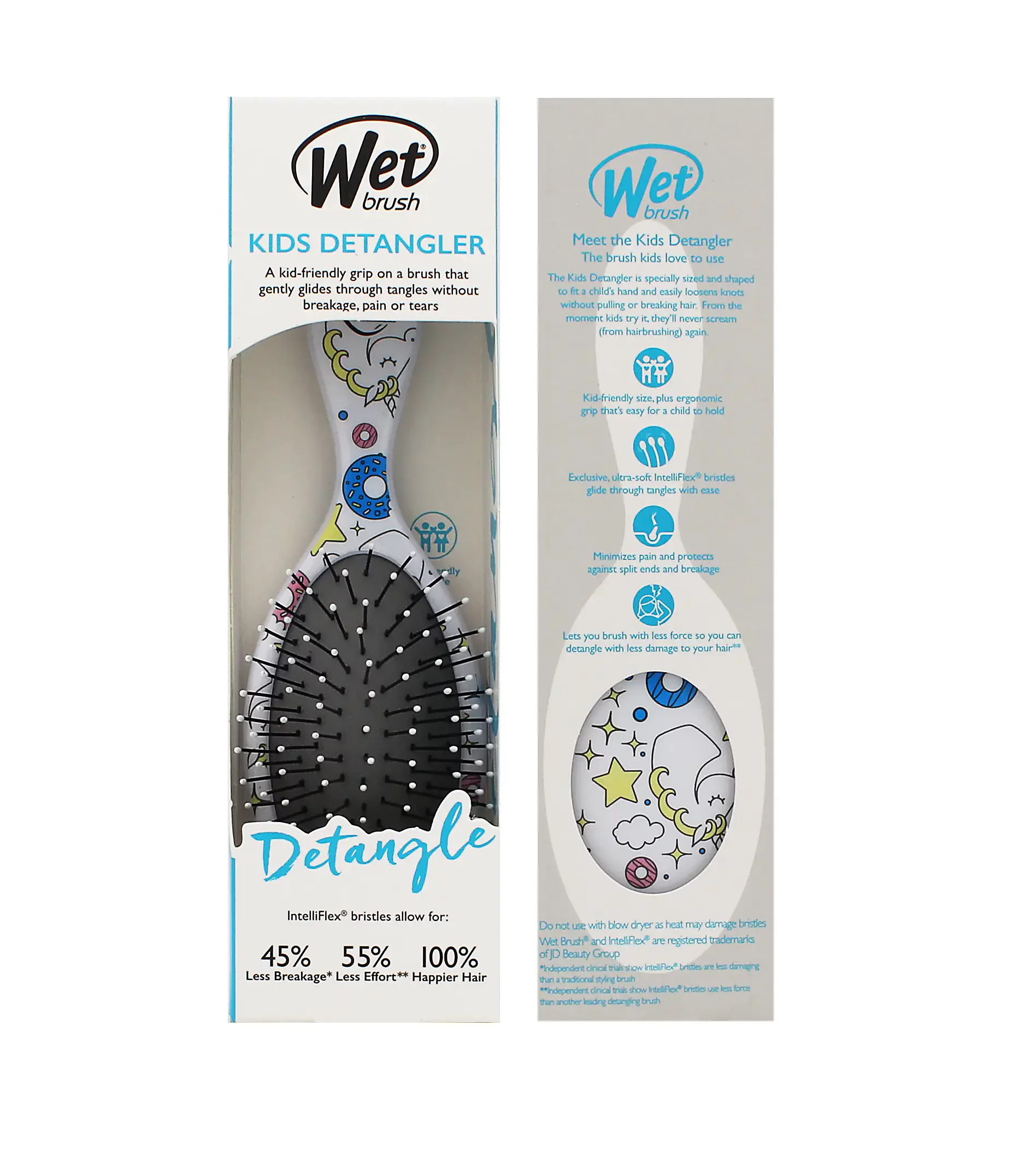 Seznamte se s Kids Detangler kartáčem na vlasy speciálně navržený tak, aby podporoval zábavu při rozmotávání! Kids Detangler je tvarován tak, aby padl do dětské ručičky, jemně uvolňuje uzly na mokrých nebo suchých vlasech, aniž by je tahal nebo škubal. Ve chvíli, kdy jej děti použijí, už nikdy nebudou křičet (při kartáčování vlasů)!