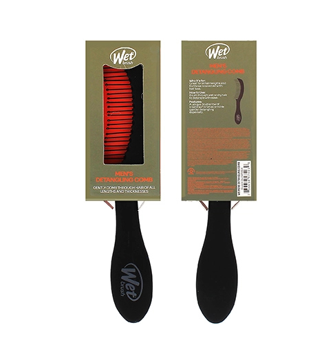 Wet Brush Men’s Detangling Comb – černý hřeben se širokými zuby pro jednoduché, šetrné rozčesávání mokrých i suchých vlasů. Ergonomický design a zaoblené zuby chrání pokožku hlavy, ideální pro každodenní péči.