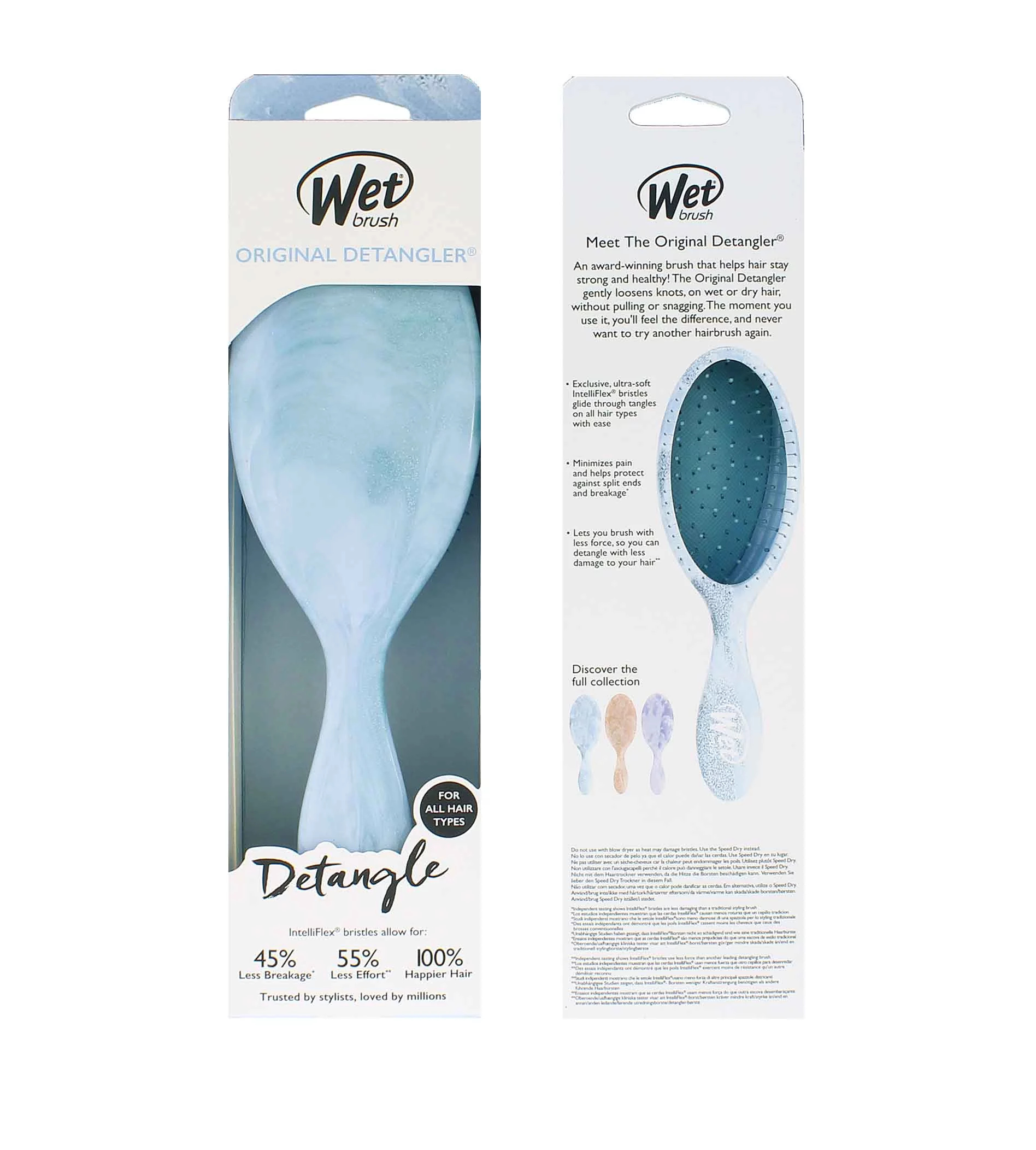 Wet Brush Original Detangler v edici Glitter Waves přináší osvědčenou technologii rozčesávání v lesklém mořském designu. Díky jedinečným IntelliFlex® štětinám jemně a účinně rozmotává vlasy bez tahání, lámání a bolesti – ať už jsou mokré, suché, jemné nebo husté.