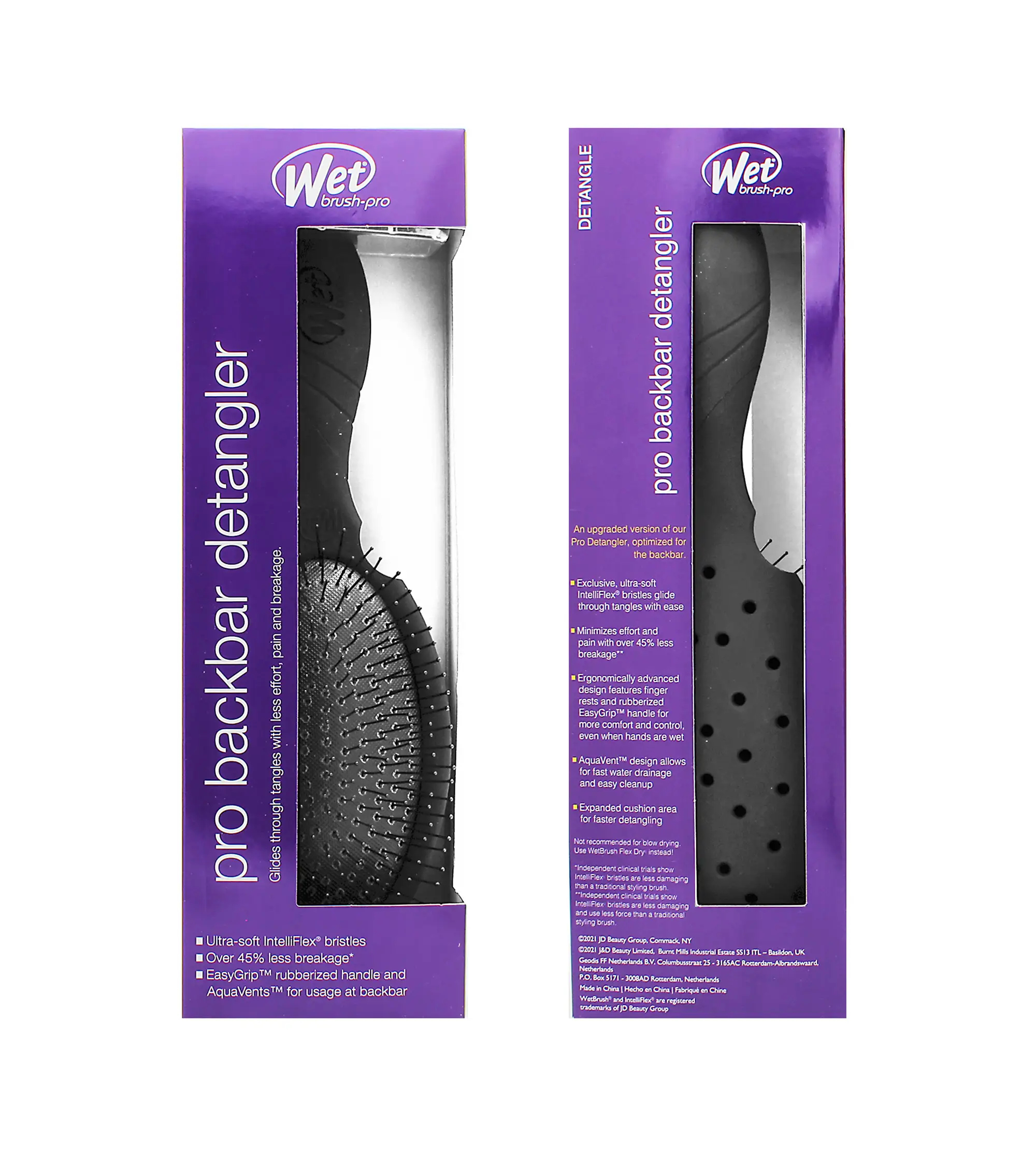 Profesionální detangling kartáč s ultra-flexibilními štětinami IntelliFlex® a ergonomickou rukojetí, ideální na mokré i suché vlasy — v elegantní černé barvě.