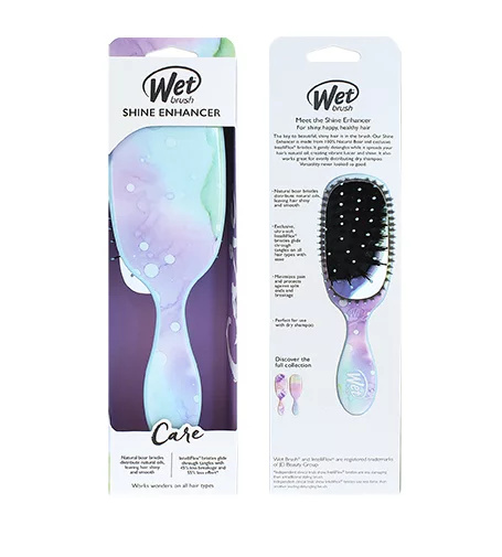 Dosáhněte lesklých, šťastných vlasů s kartáčem Wet Brush® Shine Enhancer. Přírodní kančí štětiny přirozeně odstraňují nečistoty, snižují krepatění a distribuují přírodní oleje vlasů pro lesklý a hladký povrch. Exkluzivní, ultra-měkké štětiny IntelliFlex® snadno proklouznou zamotanými vlasy, minimalizují bolest a chrání před roztřepenými konečky a lámáním vlasů. Mezi dny mytí tento kartáč také skvěle funguje se suchým šamponem pro osvěžení účesů.