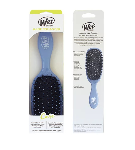 Dosáhněte lesklých, šťastných vlasů s kartáčem Wet Brush® Shine Enhancer. Přírodní kančí štětiny přirozeně odstraňují nečistoty, snižují krepatění a distribuují přírodní oleje vlasů pro lesklý a hladký povrch. Exkluzivní, ultra-měkké štětiny IntelliFlex® snadno proklouznou zamotanými vlasy, minimalizují bolest a chrání před roztřepenými konečky a lámáním vlasů. Mezi dny mytí tento kartáč také skvěle funguje se suchým šamponem pro osvěžení účesů.
