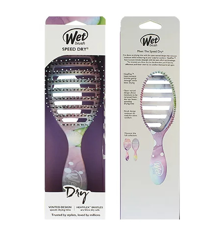 Upgradujte svou stylingovou rutinu a chraňte své vlasy před poškozením s kartáčem Wet Brush® Speed Dry®. Jeho odvětrávaný design umožňuje průchod vzduchu kartáčem, čímž se urychluje doba sušení a snižuje se vystavení vlasů teplu. Štětiny HeatFlex® se při úpravě ohýbají, zabraňují tahání nebo zachycování pramenů a chrání tak vlasy před lámáním a poškozením.