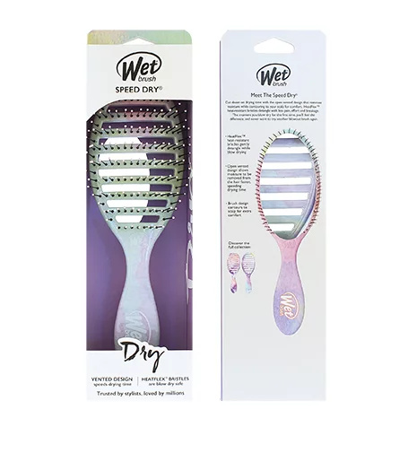 Upgradujte svou stylingovou rutinu a chraňte své vlasy před poškozením s kartáčem Wet Brush® Speed Dry®. Jeho odvětrávaný design umožňuje průchod vzduchu kartáčem, čímž se urychluje doba sušení a snižuje se vystavení vlasů teplu. Štětiny HeatFlex® se při úpravě ohýbají, zabraňují tahání nebo zachycování pramenů a chrání tak vlasy před lámáním a poškozením.