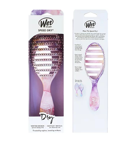 Upgradujte svou stylingovou rutinu a chraňte své vlasy před poškozením s kartáčem Wet Brush® Speed Dry®. Jeho odvětrávaný design umožňuje průchod vzduchu kartáčem, čímž se urychluje doba sušení a snižuje se vystavení vlasů teplu. Štětiny HeatFlex® se při úpravě ohýbají, zabraňují tahání nebo zachycování pramenů a chrání tak vlasy před lámáním a poškozením.