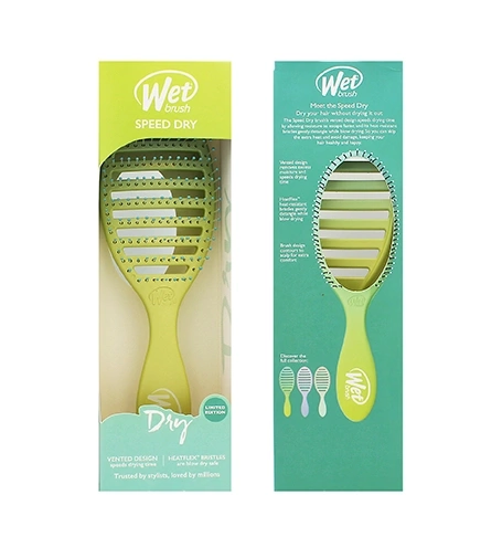Wet Brush Speed Dry – Green/Blue je odlehčený kartáč na rychlé a šetrné vysoušení vlasů. Díky ventilační konstrukci urychluje proudění vzduchu, minimalizuje lámání a zajišťuje hladké pročesání bez tahání.